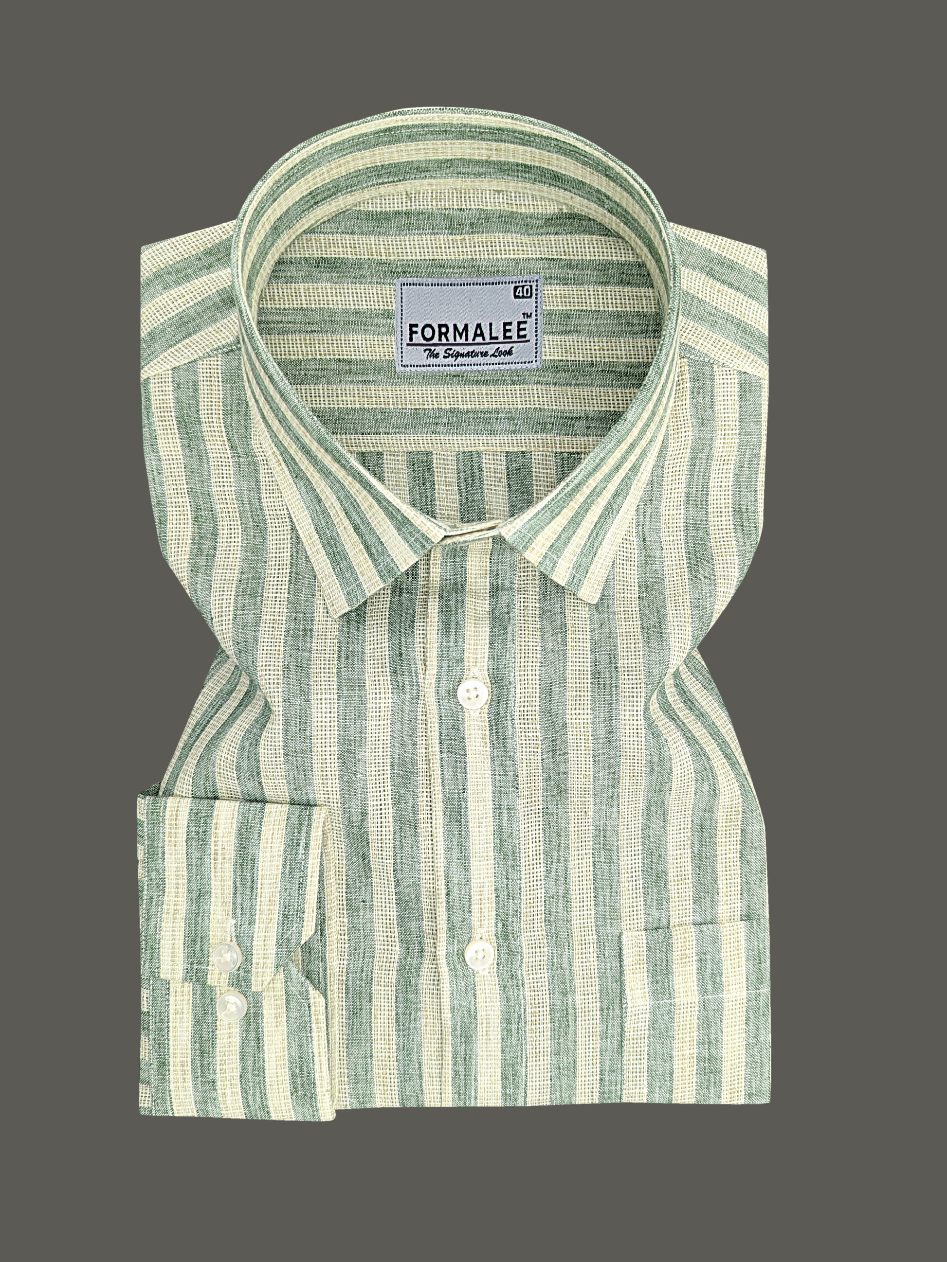 Aurelius Premium Linen Cotton Willow Green Stripe Formal Shirt