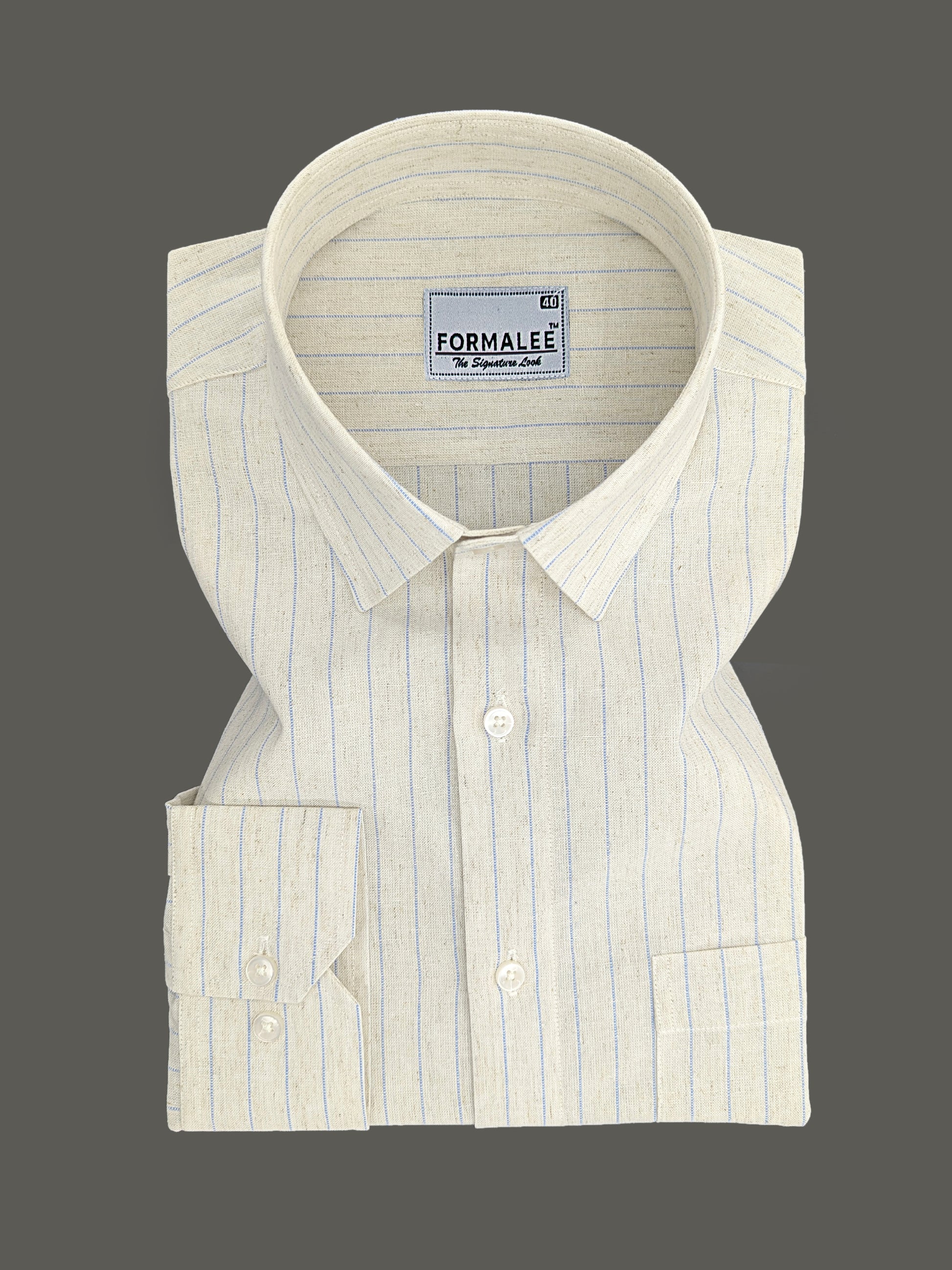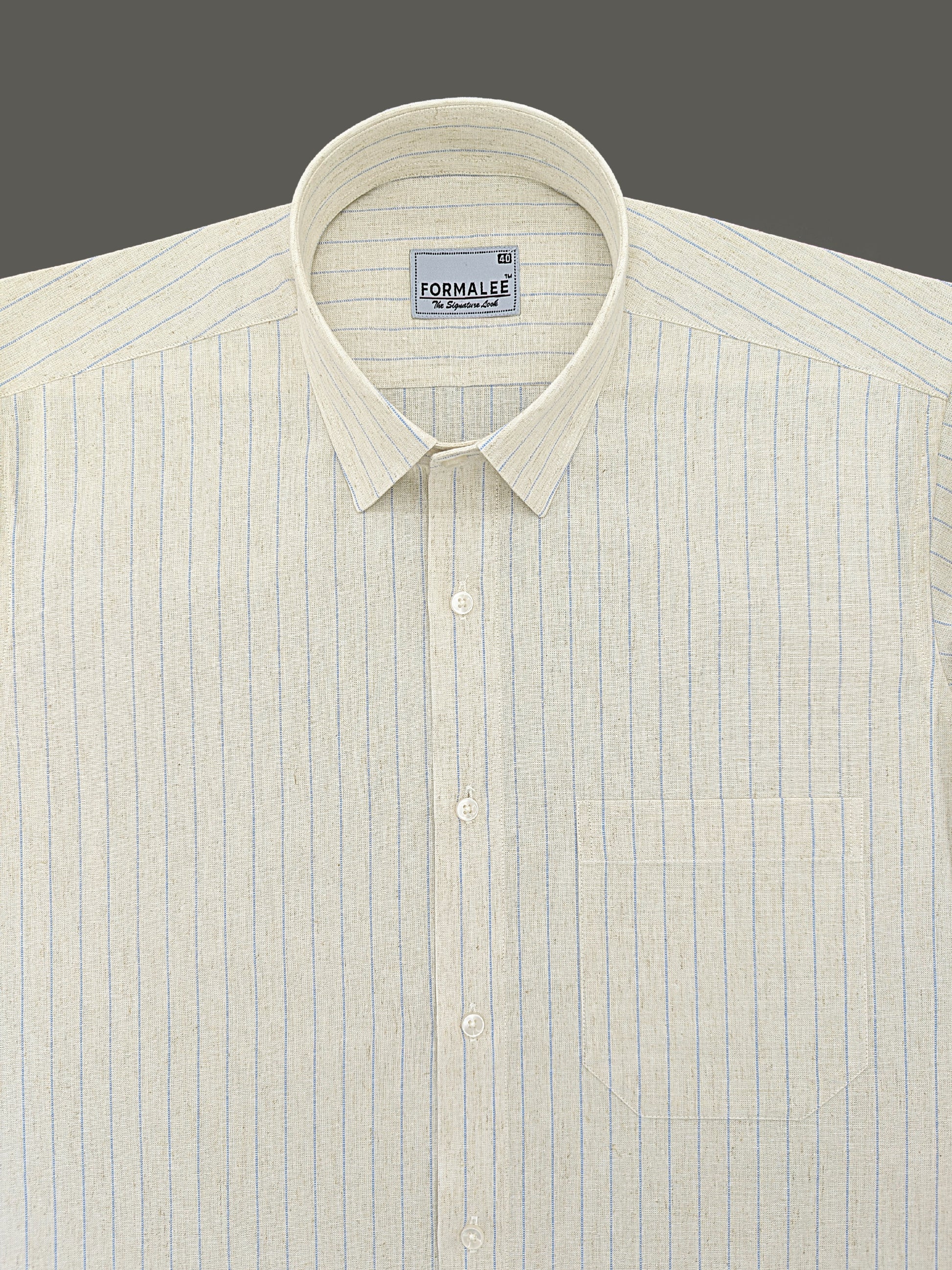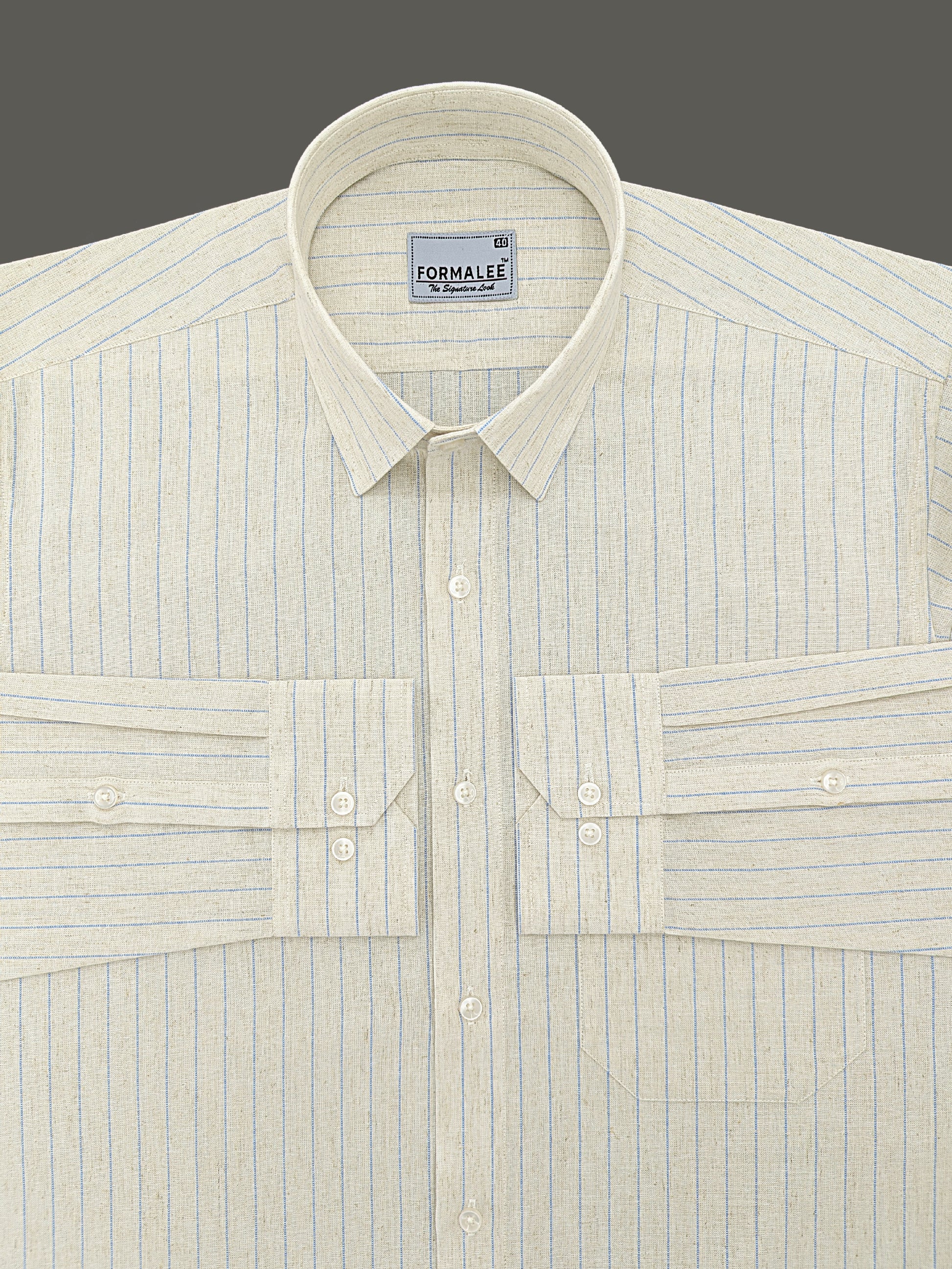 Imperial Luxurious Linen Cotton Blue Dotted Line On Cream Formal Shirt