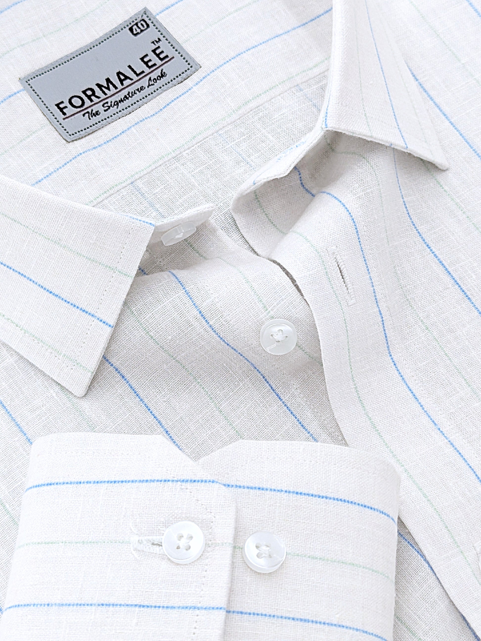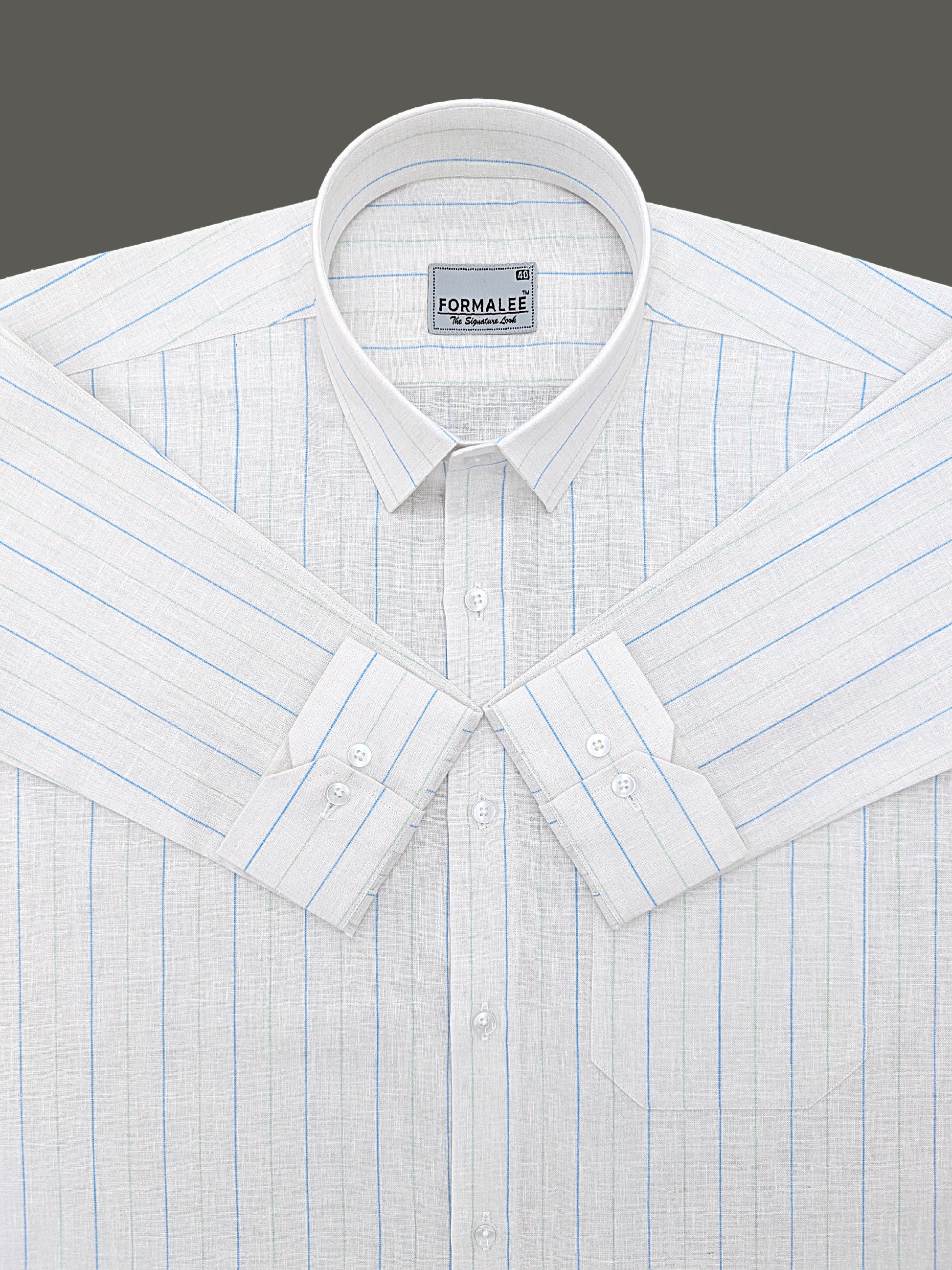 Imperial Luxurious Linen Cotton Blue Line On White Formal Shirt