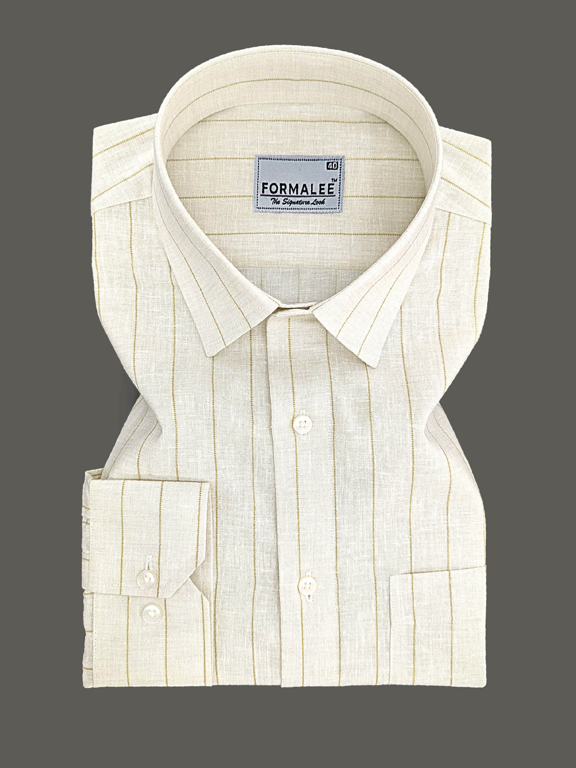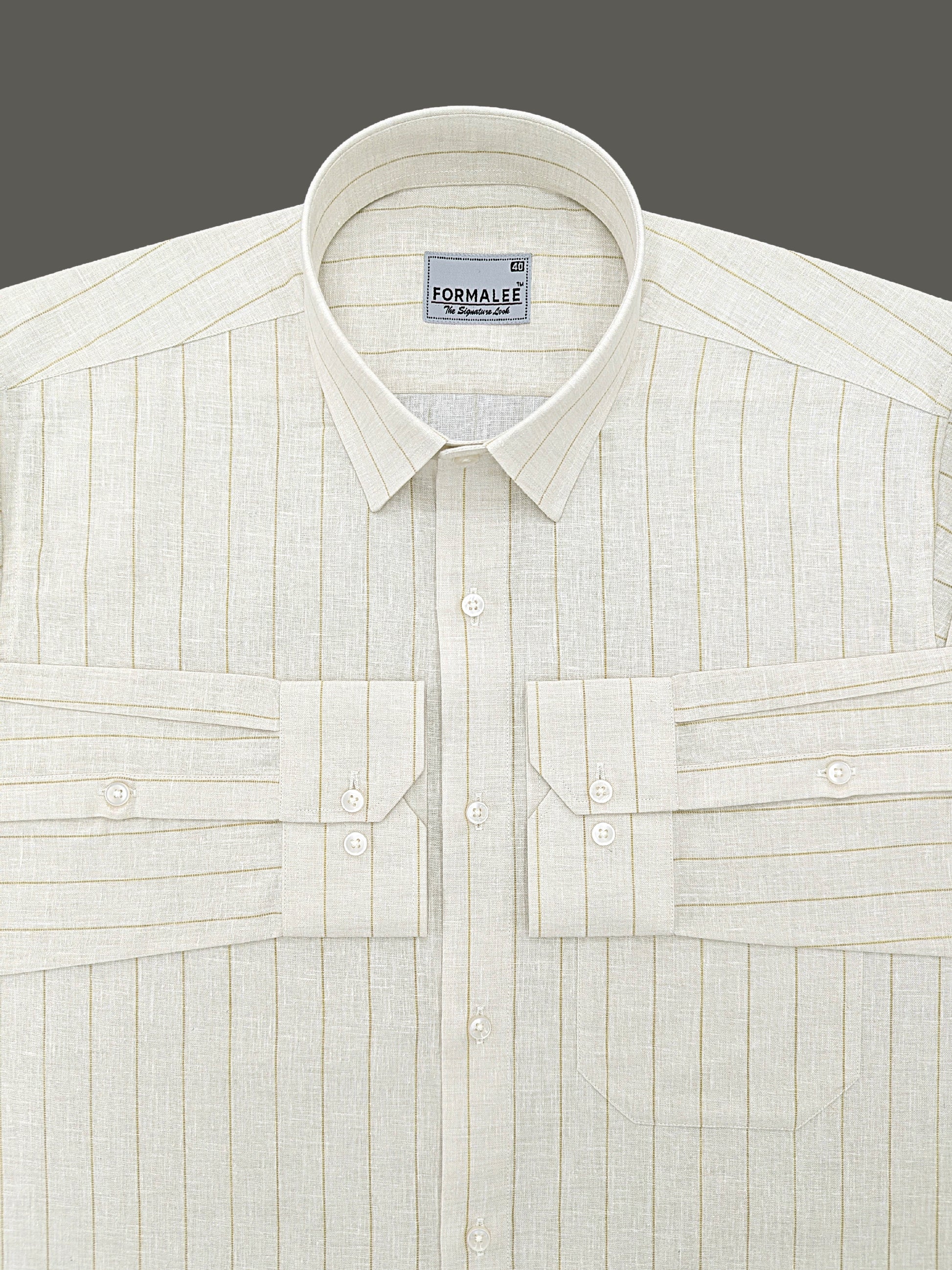 Imperial Luxurious Linen Cotton Brown Dotted Line On Cream Formal Shirt