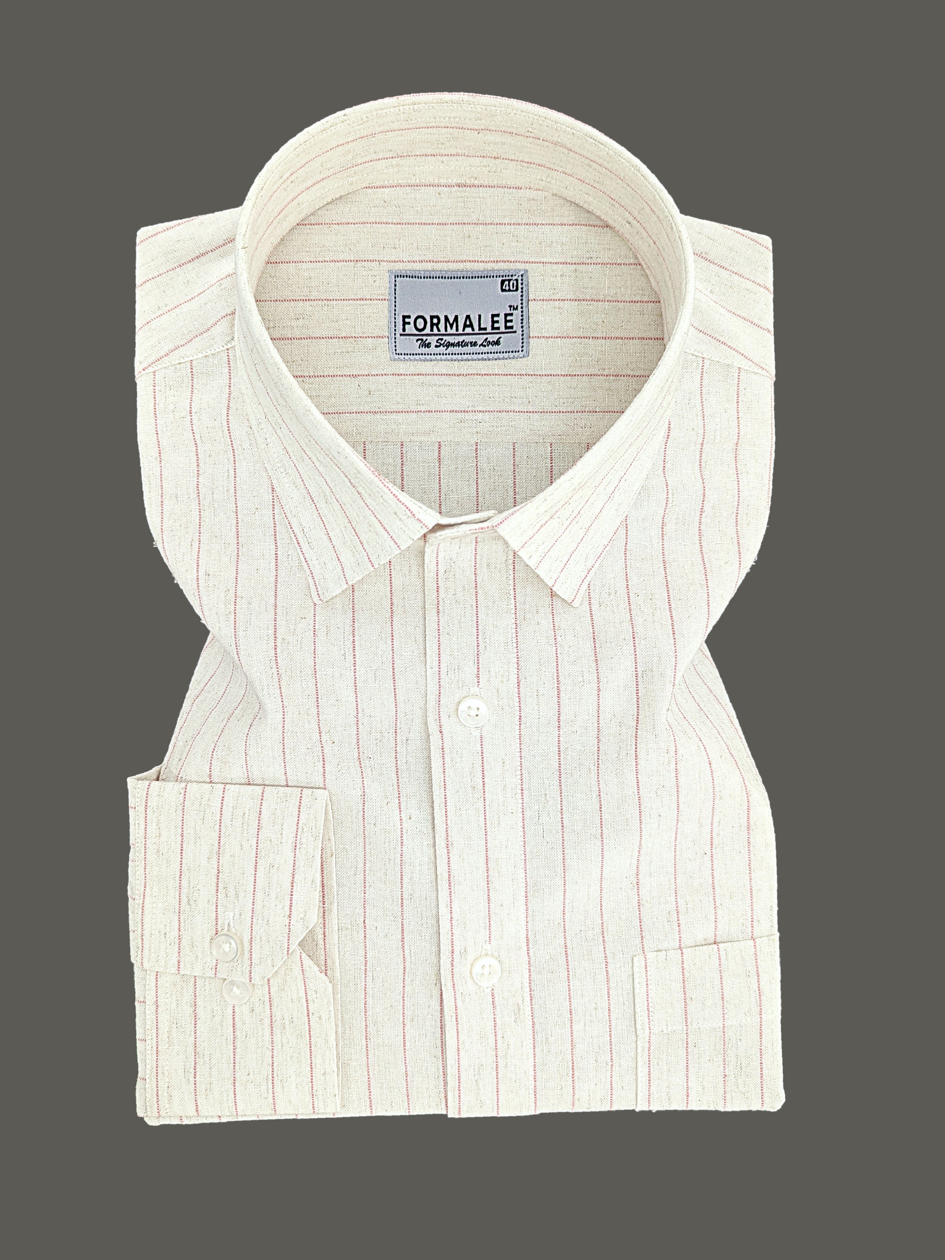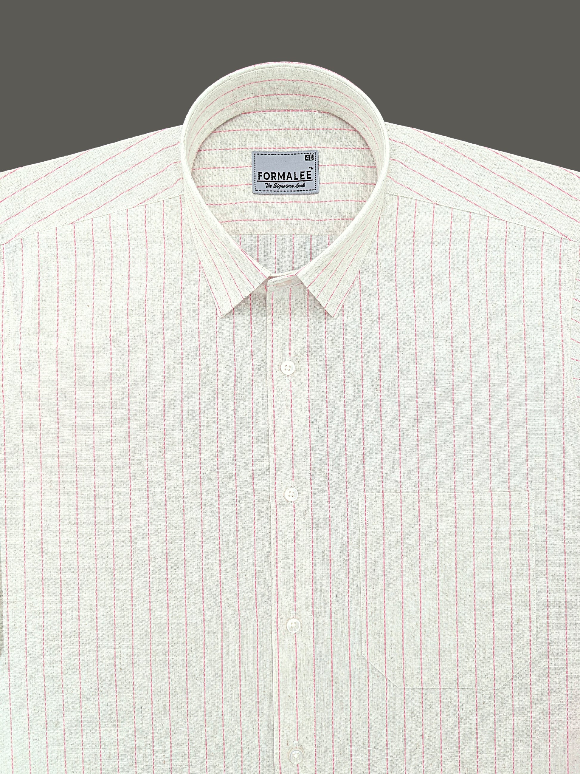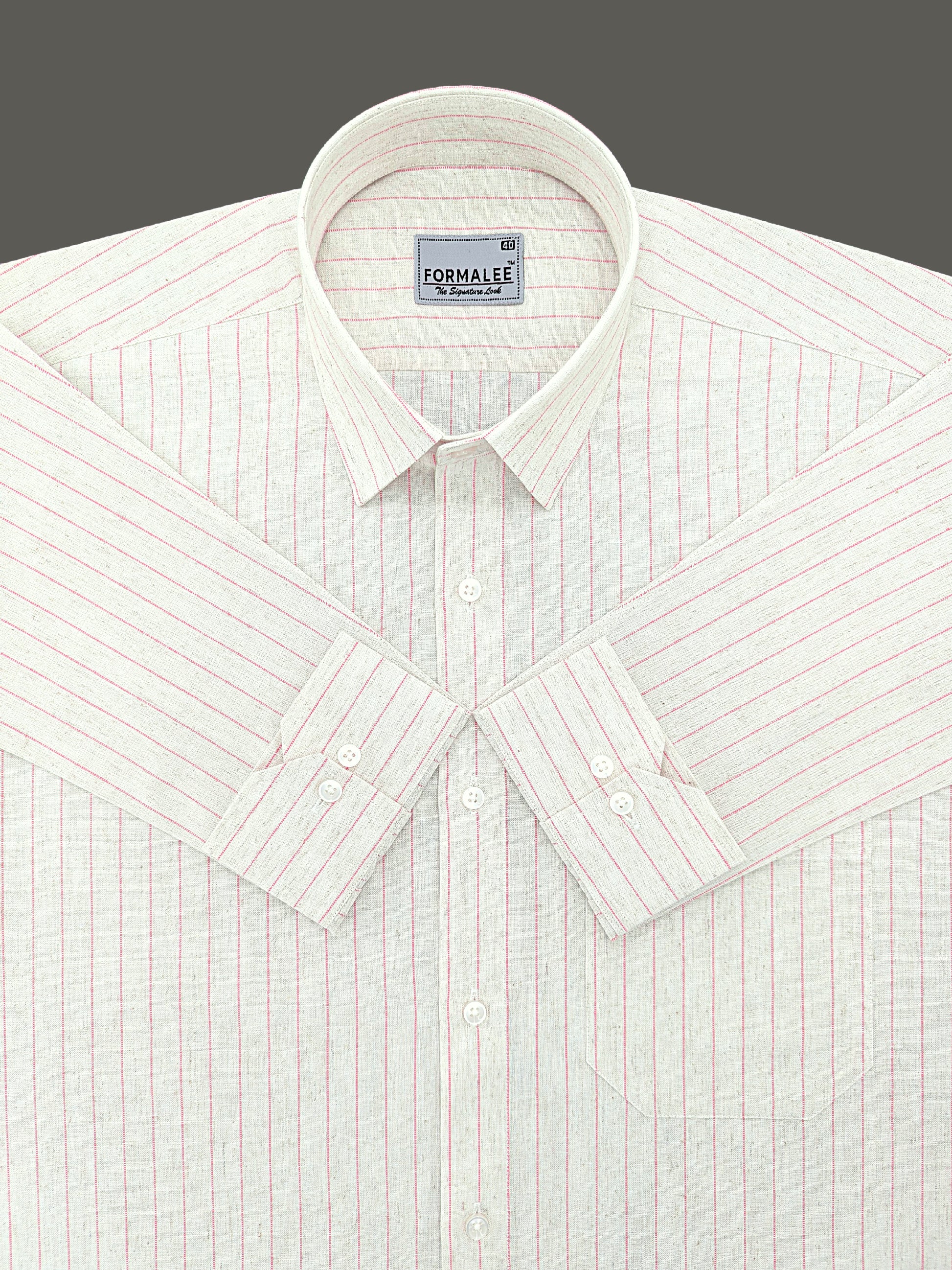 Imperial Luxurious Linen Cotton Pink Line On Cream Formal Shirt
