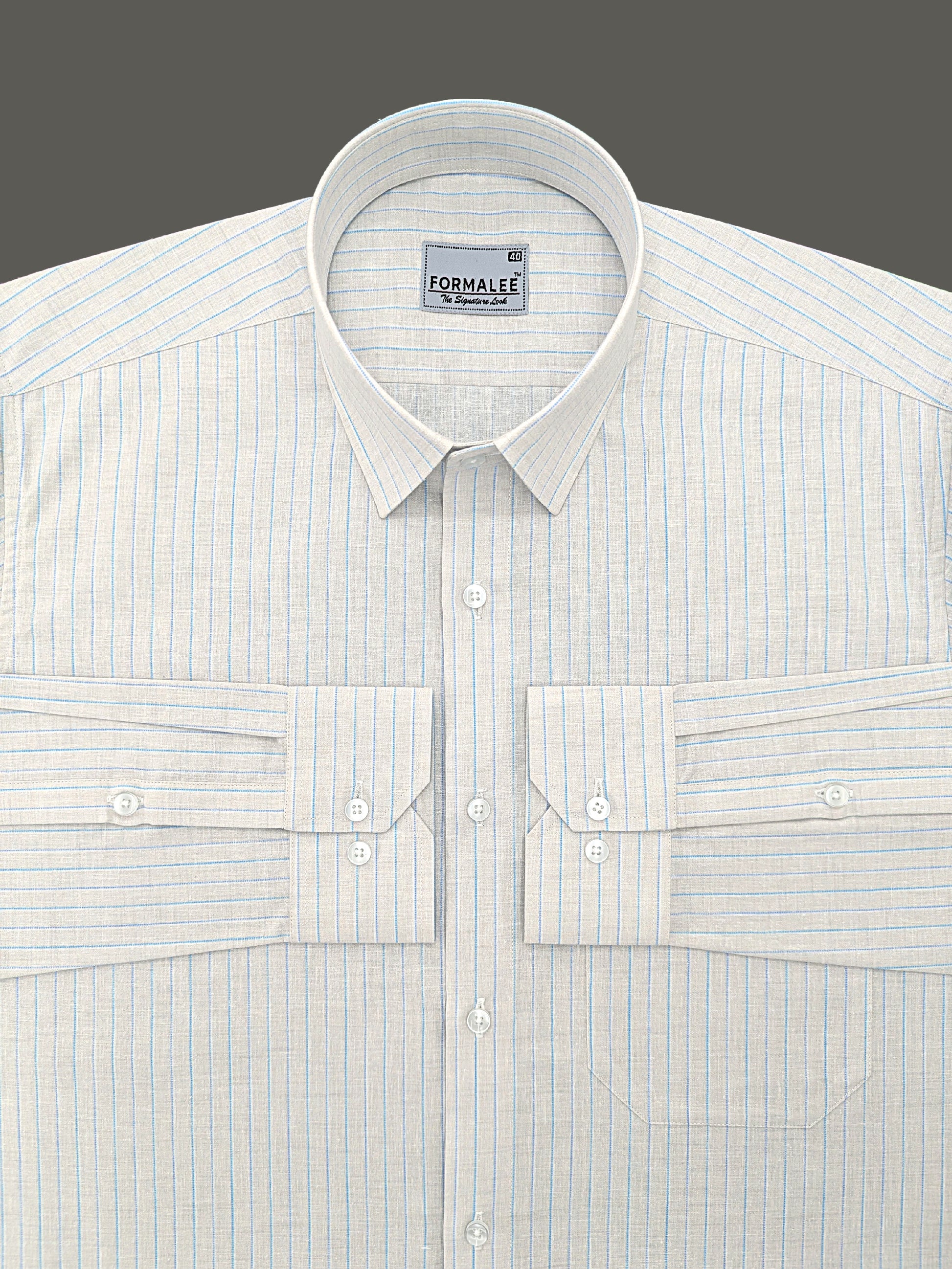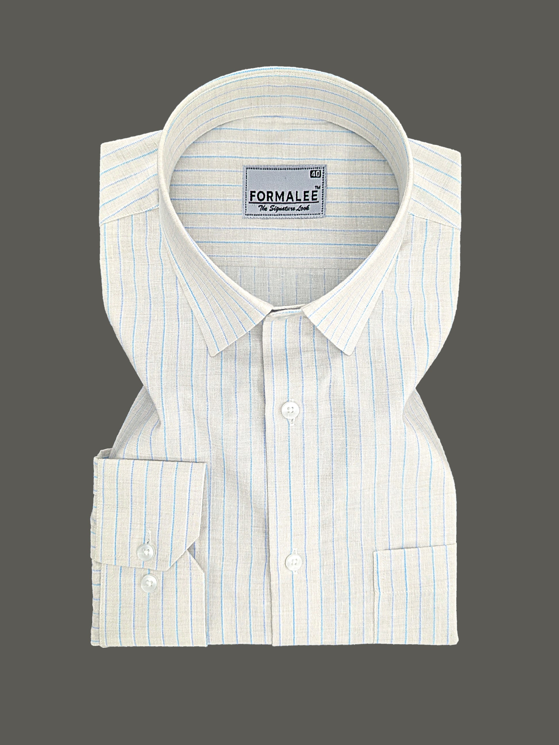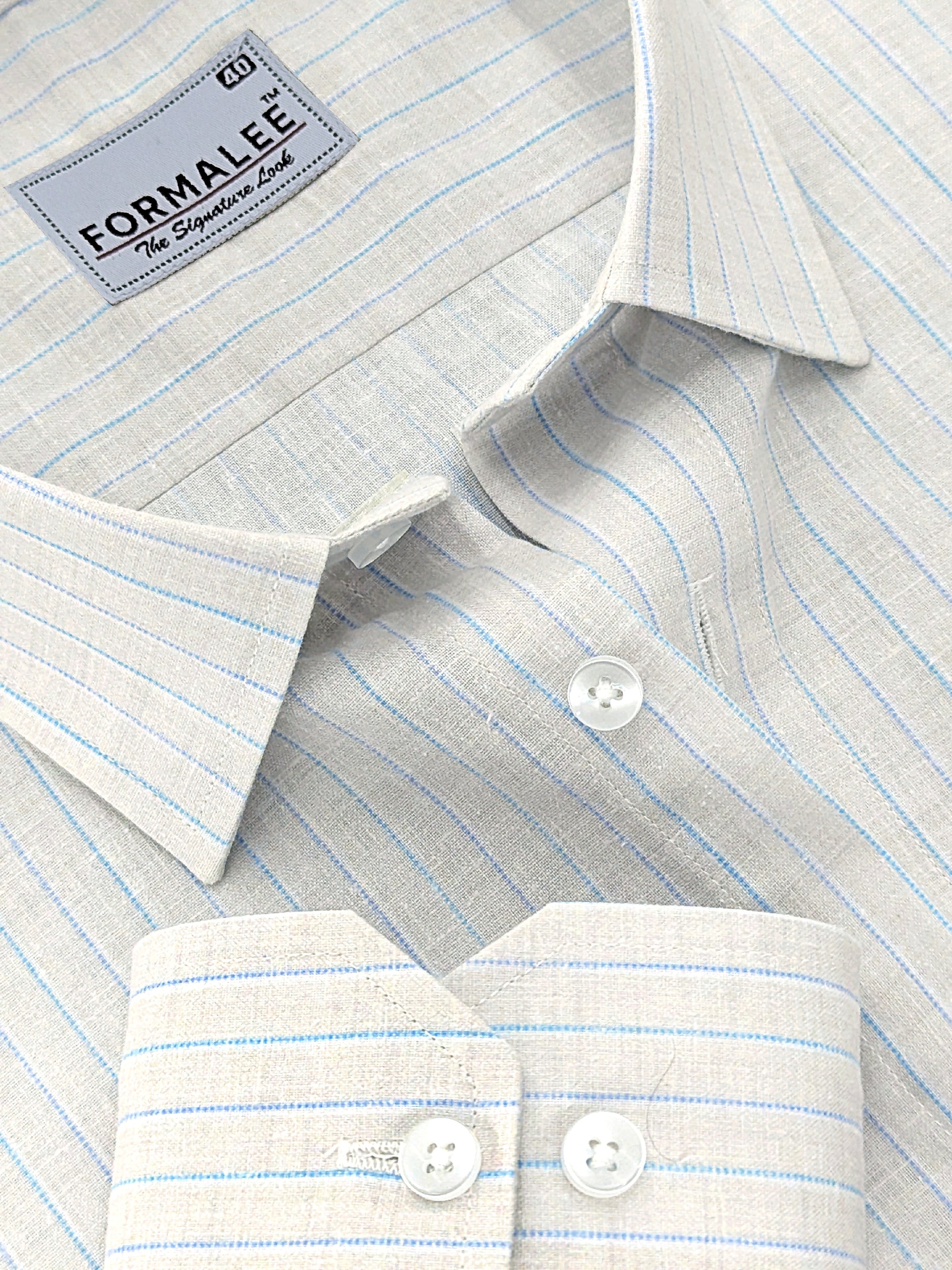Ivory Mist Classic Cotton Linen Blue Pinstripe Formal Shirt