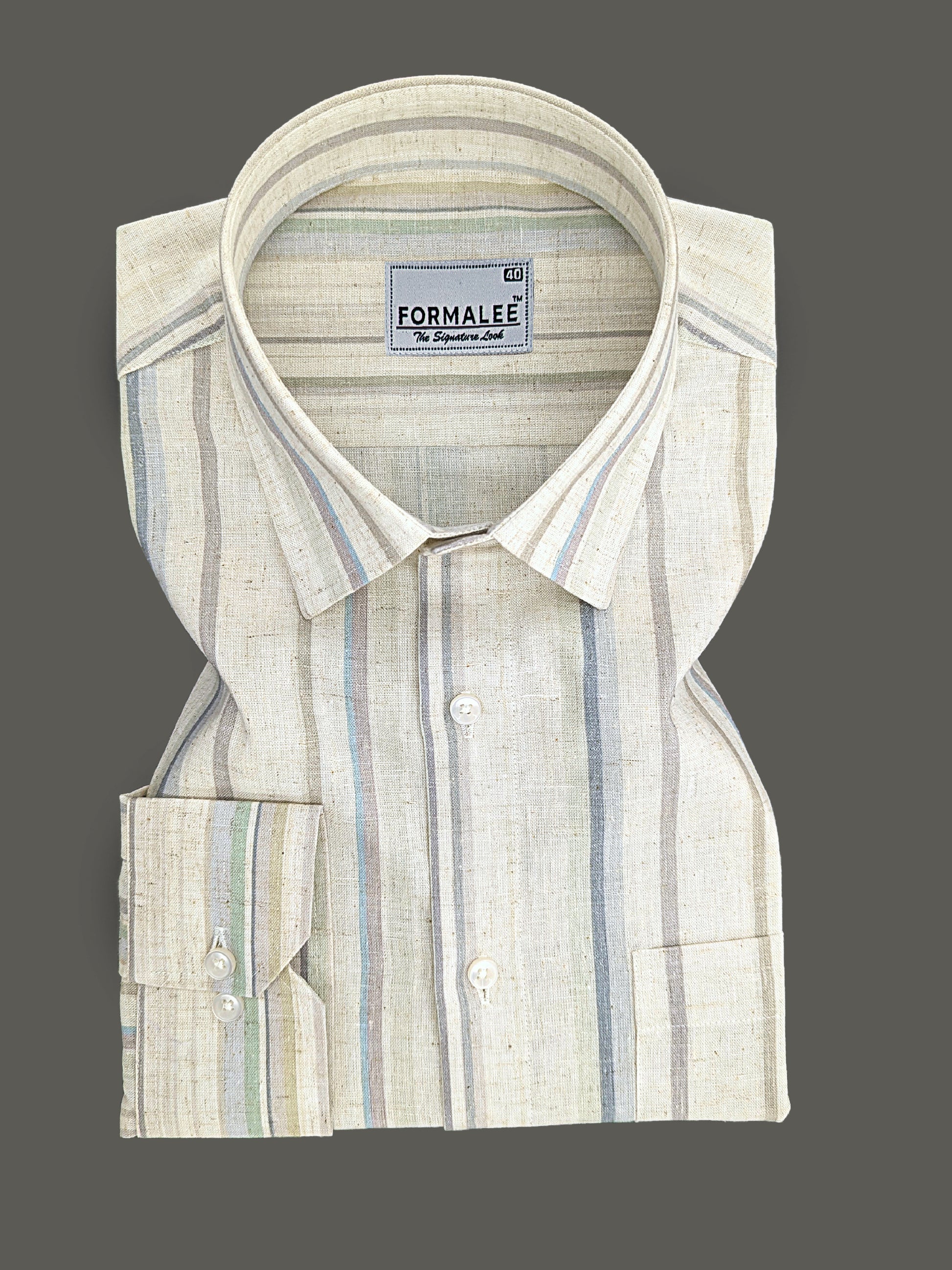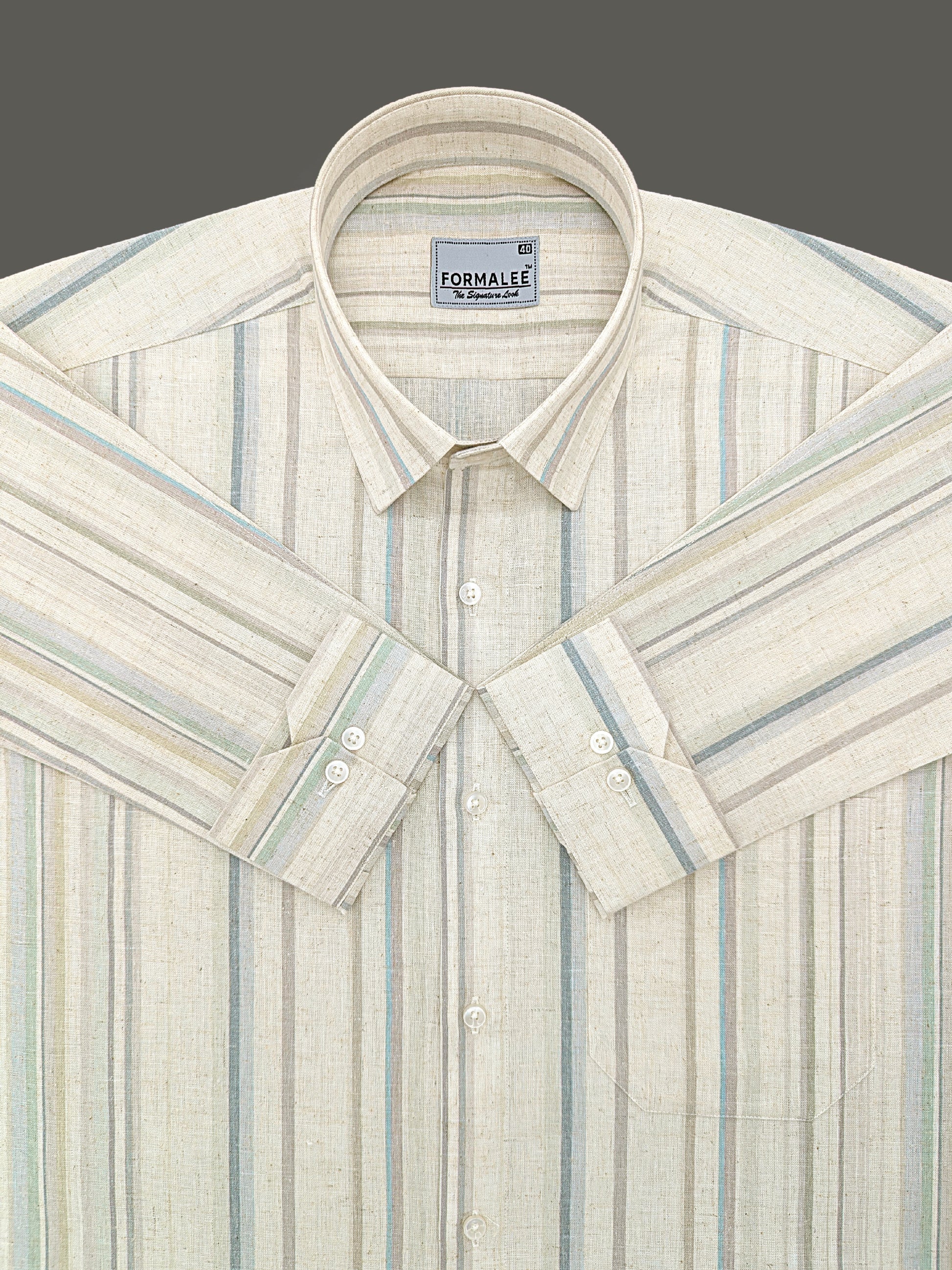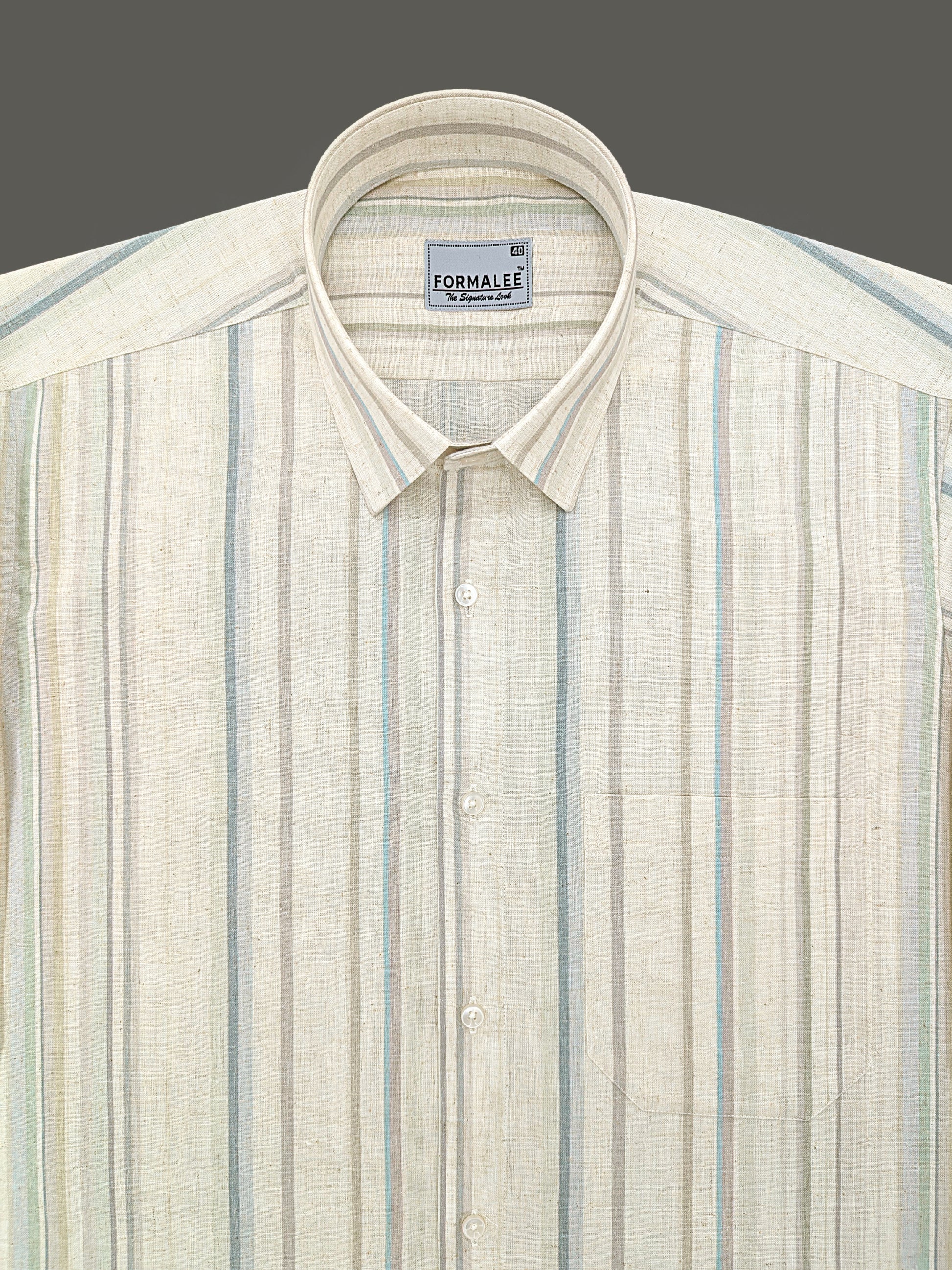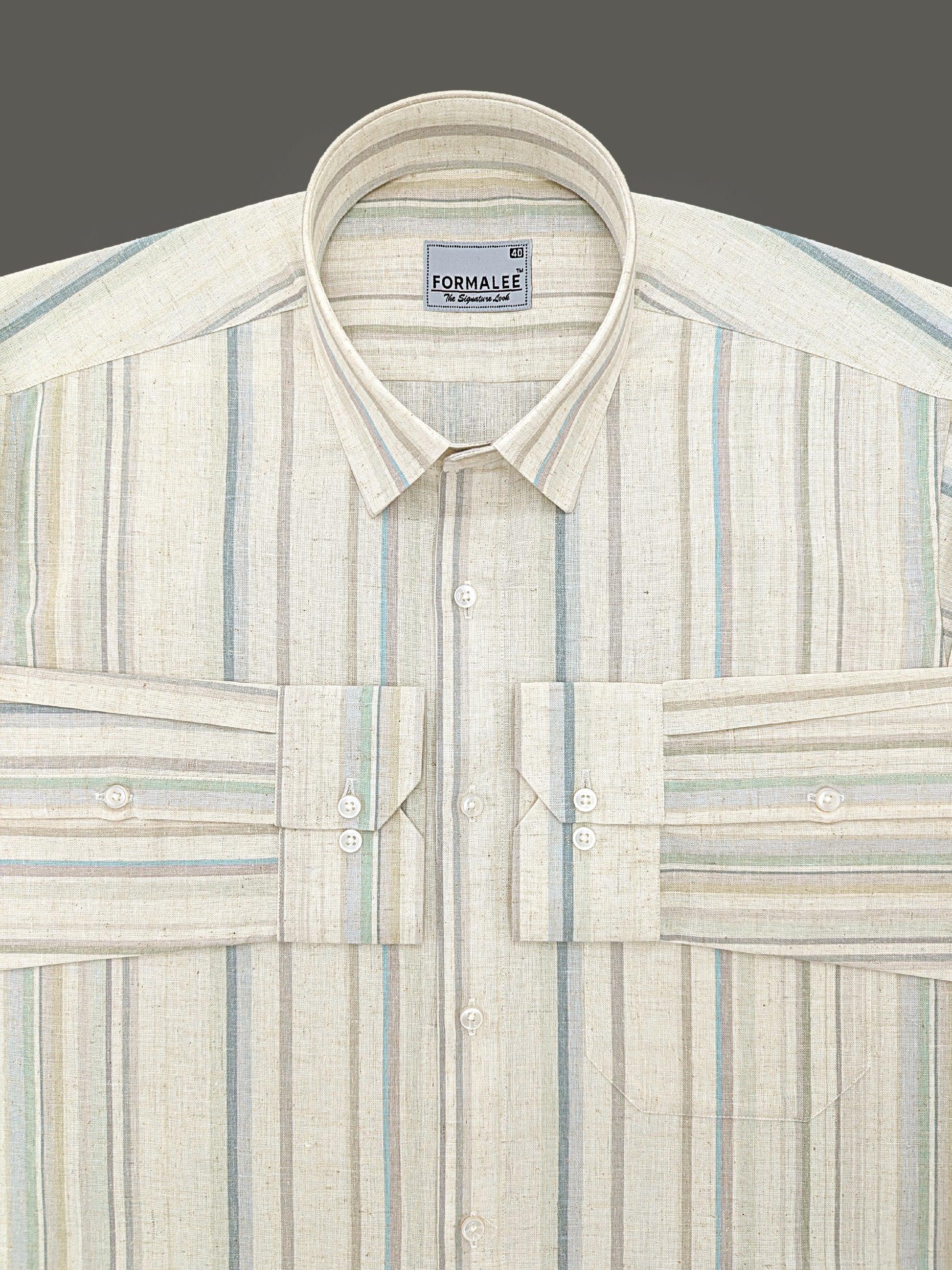 Natural Linen Beige Multitone Pastel Stripe Formal Shirt