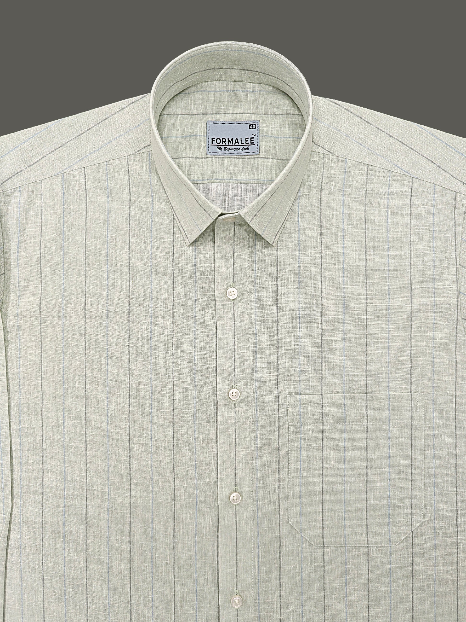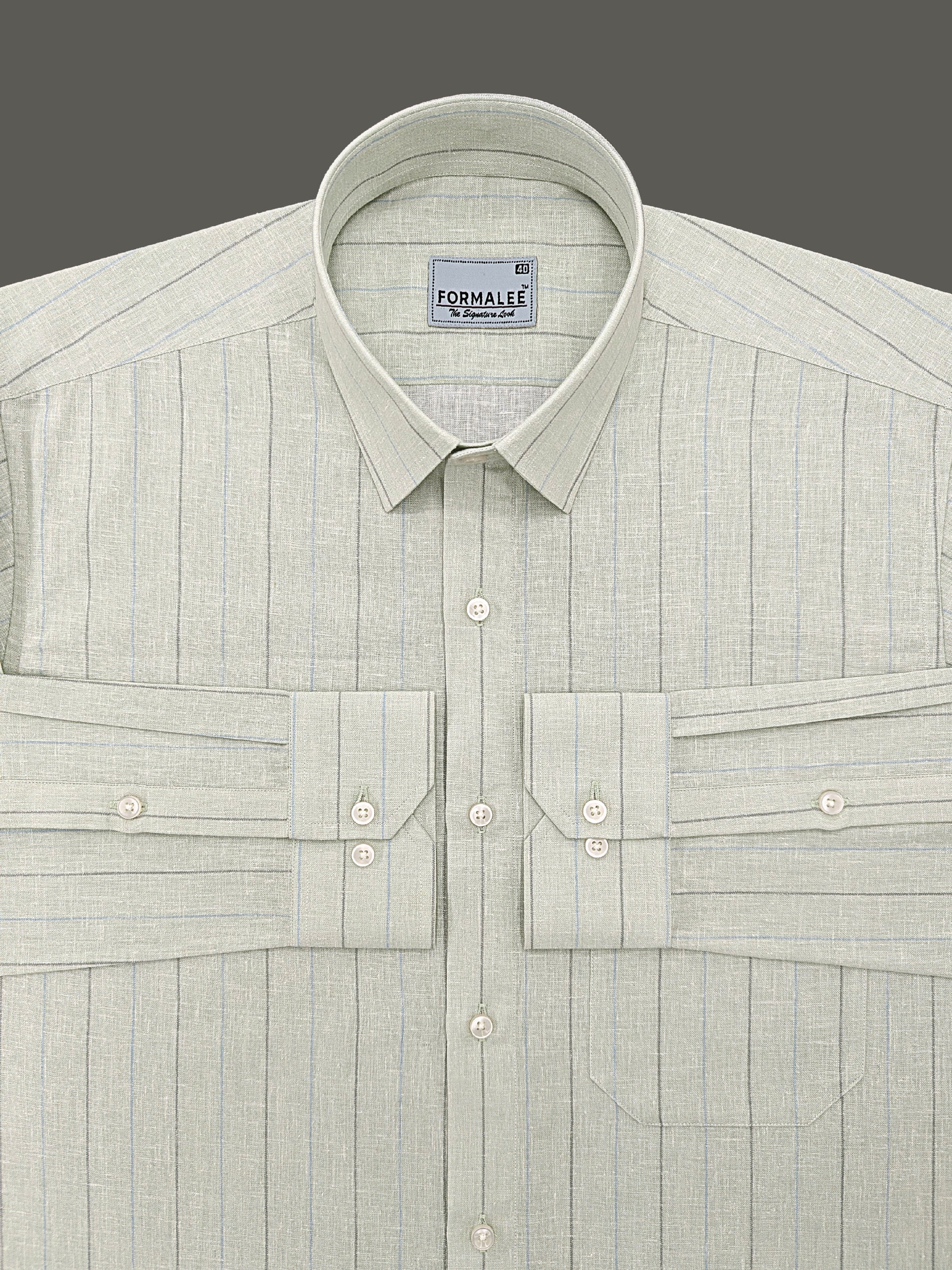 Paramount Luxurious Linen Stripe On Opaline Green Formal Shirt