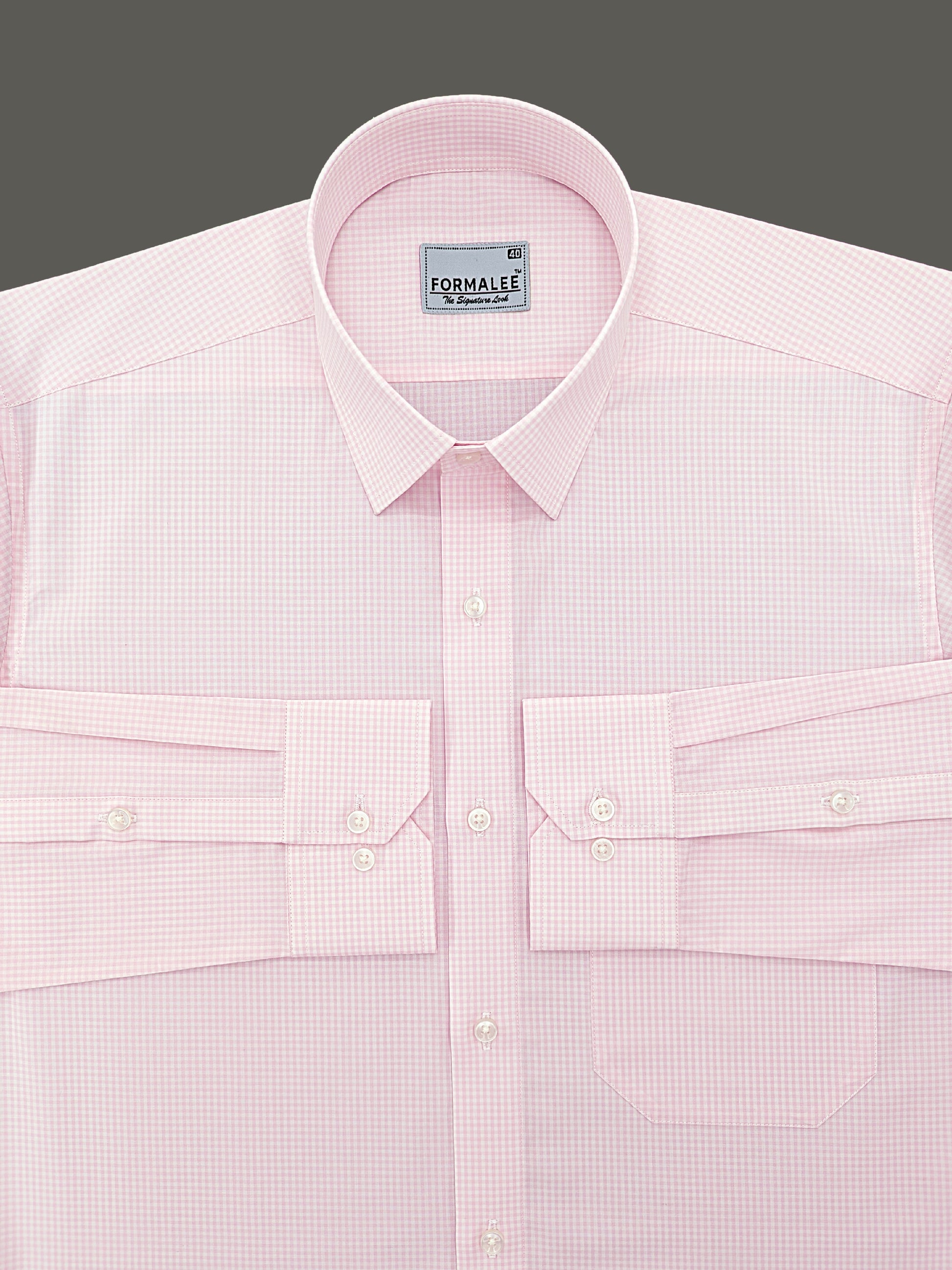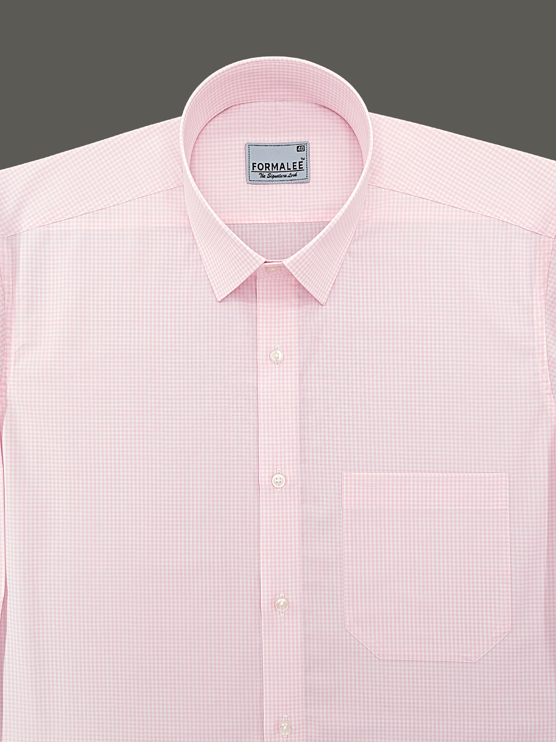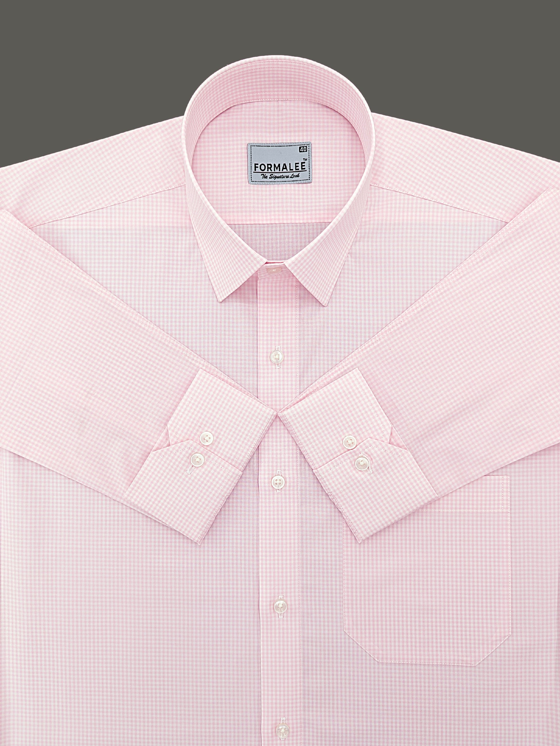 Paramount Premium Cotton Light Pink Gingham Check Formal Shirt