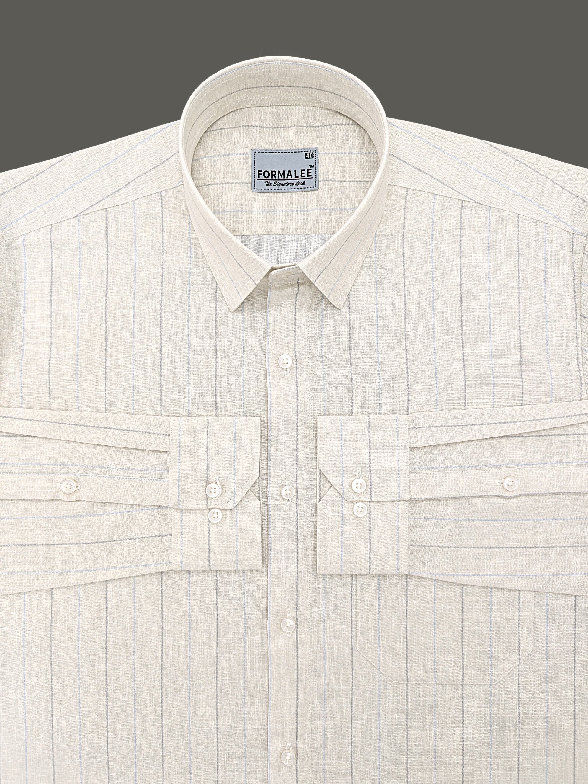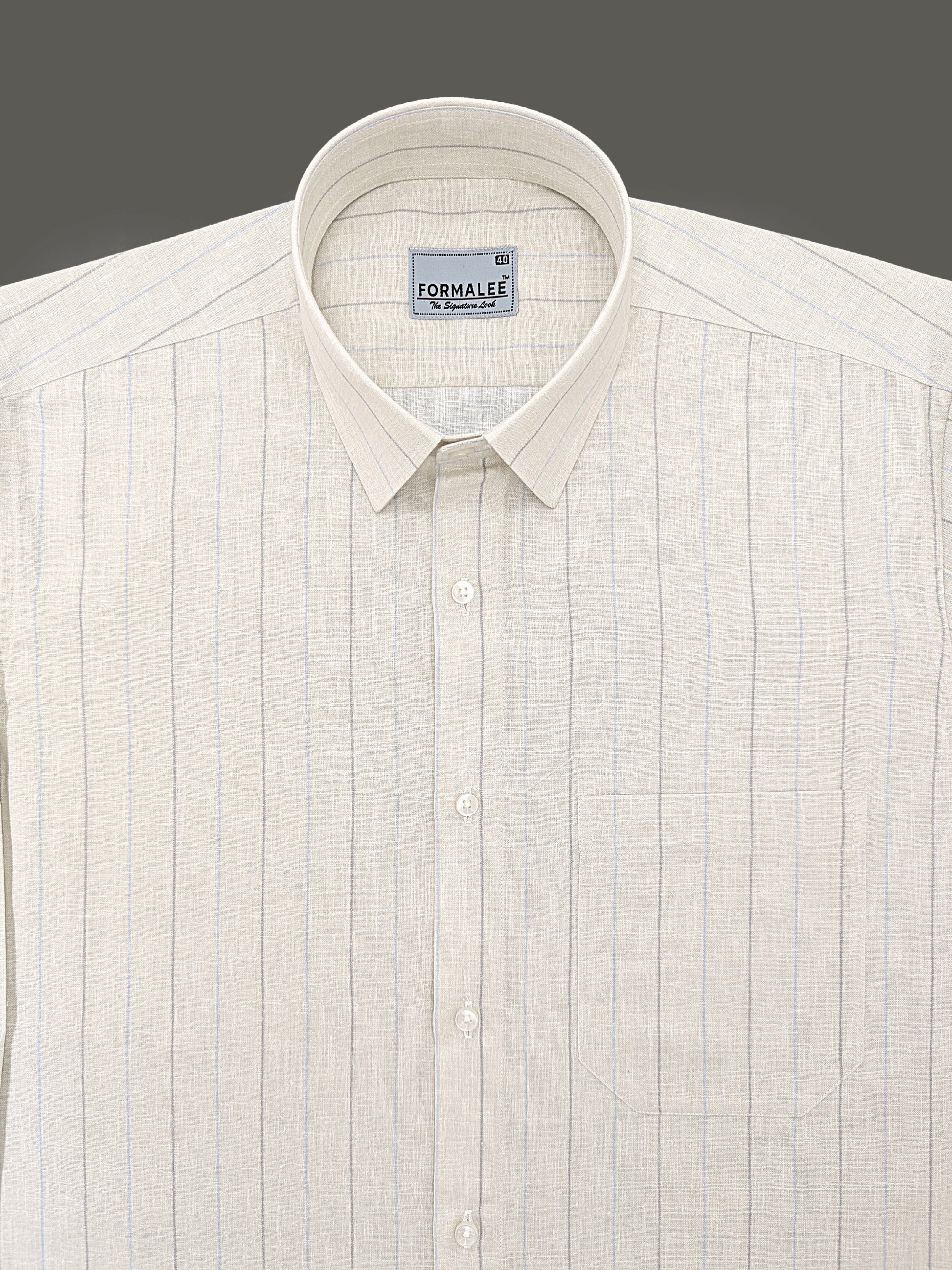 Premium Linen Cotton Blue With Grey Line On Cream Formal Shirt For Men