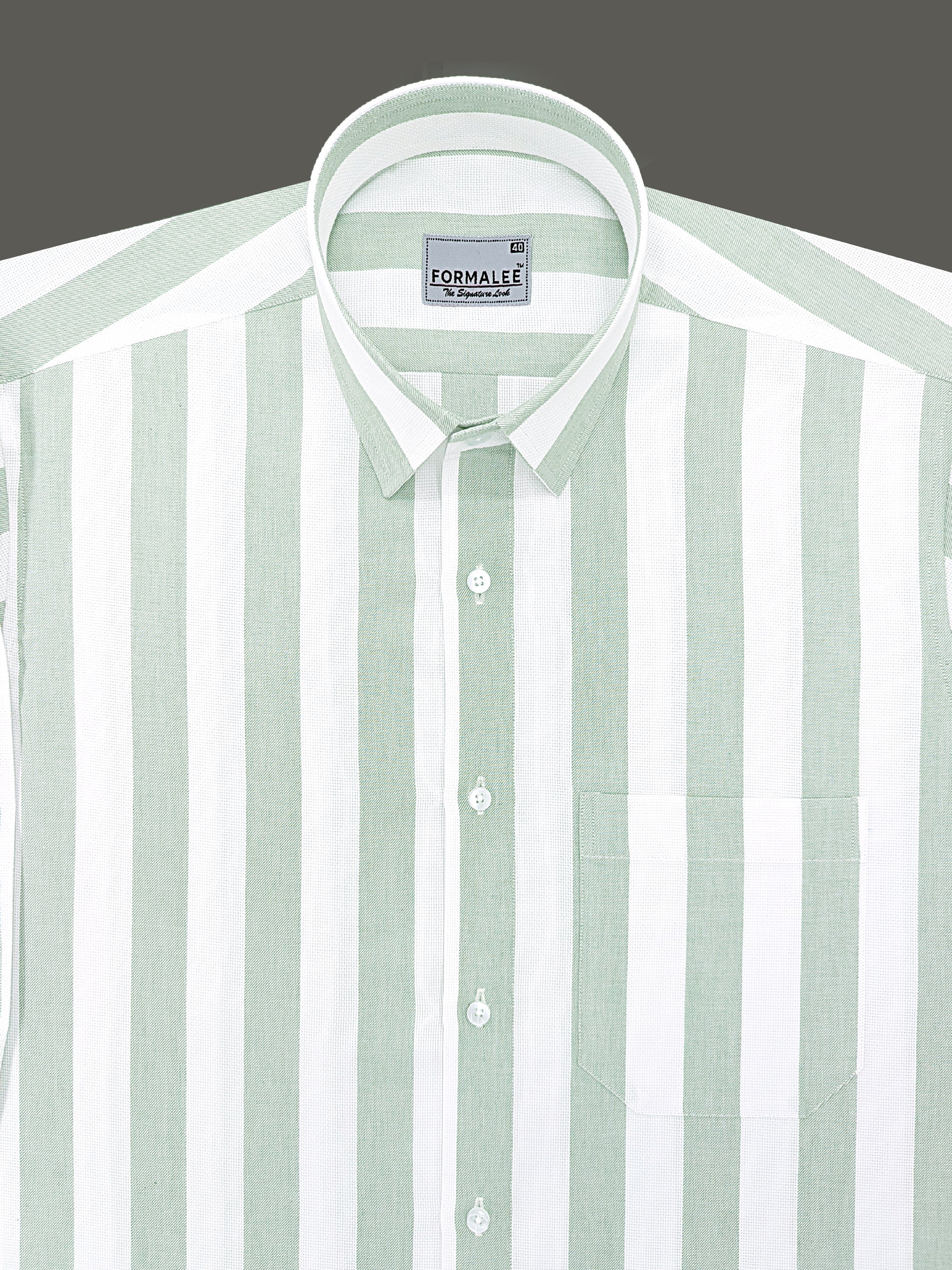 Signature Luxurious Linen Cotton Greenish Stripe On White Formal Shirt
