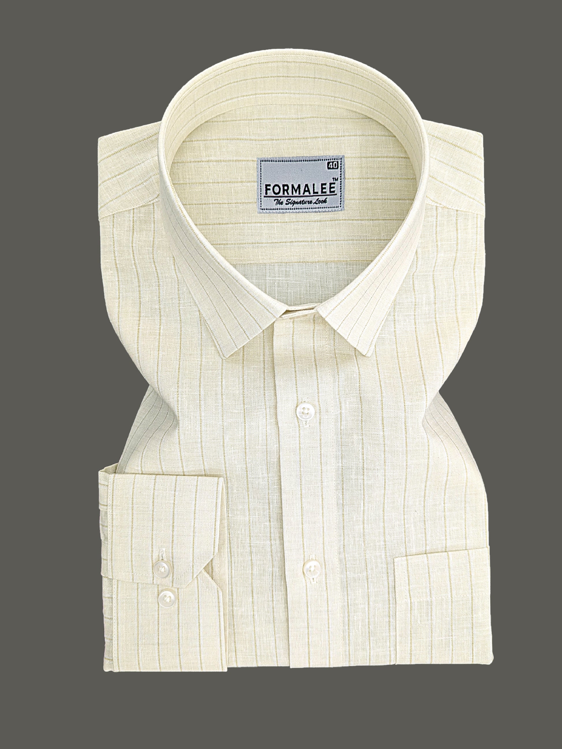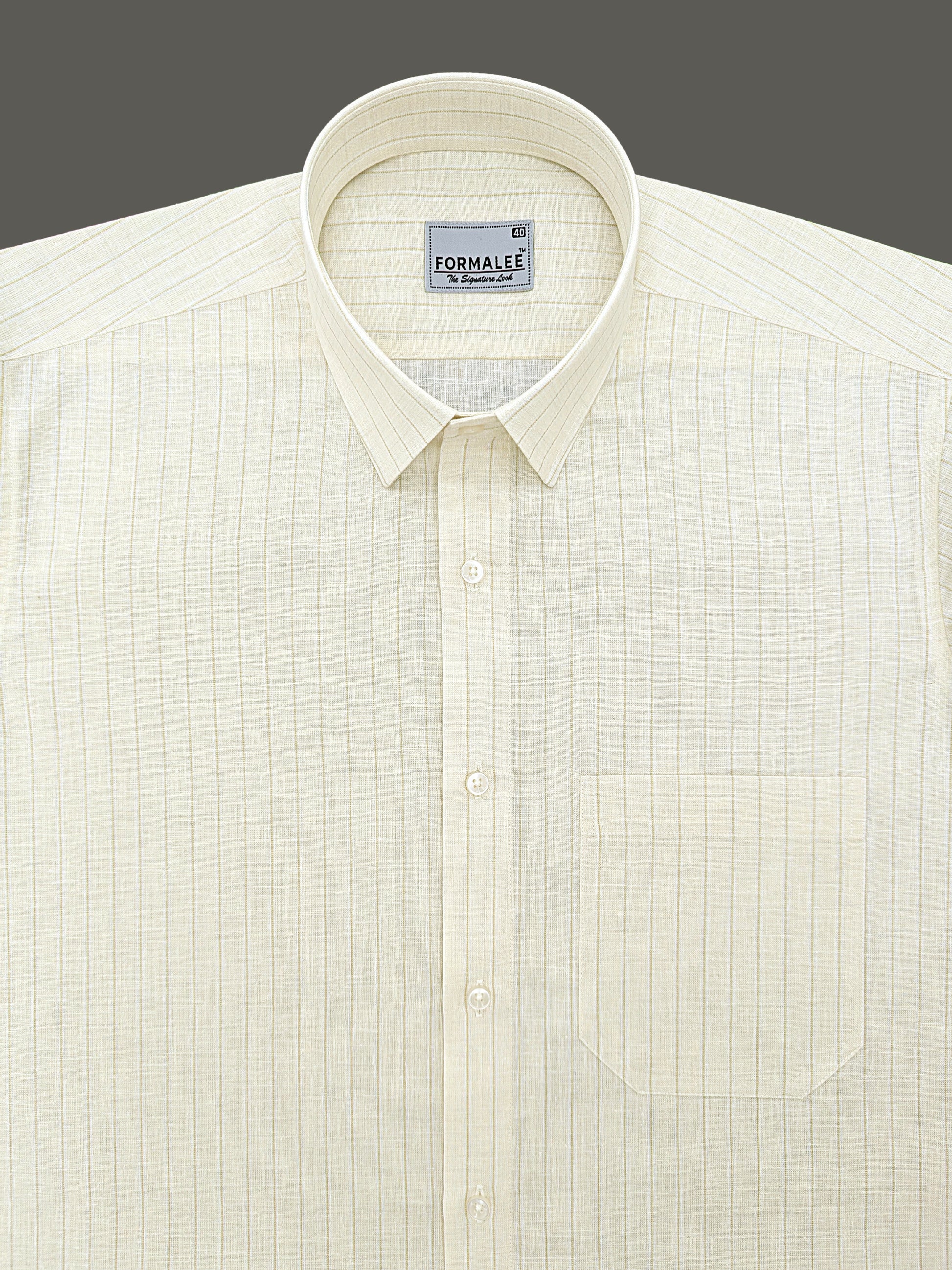 Verdant Cream Luxe Fine-Stripe Linen Shirt