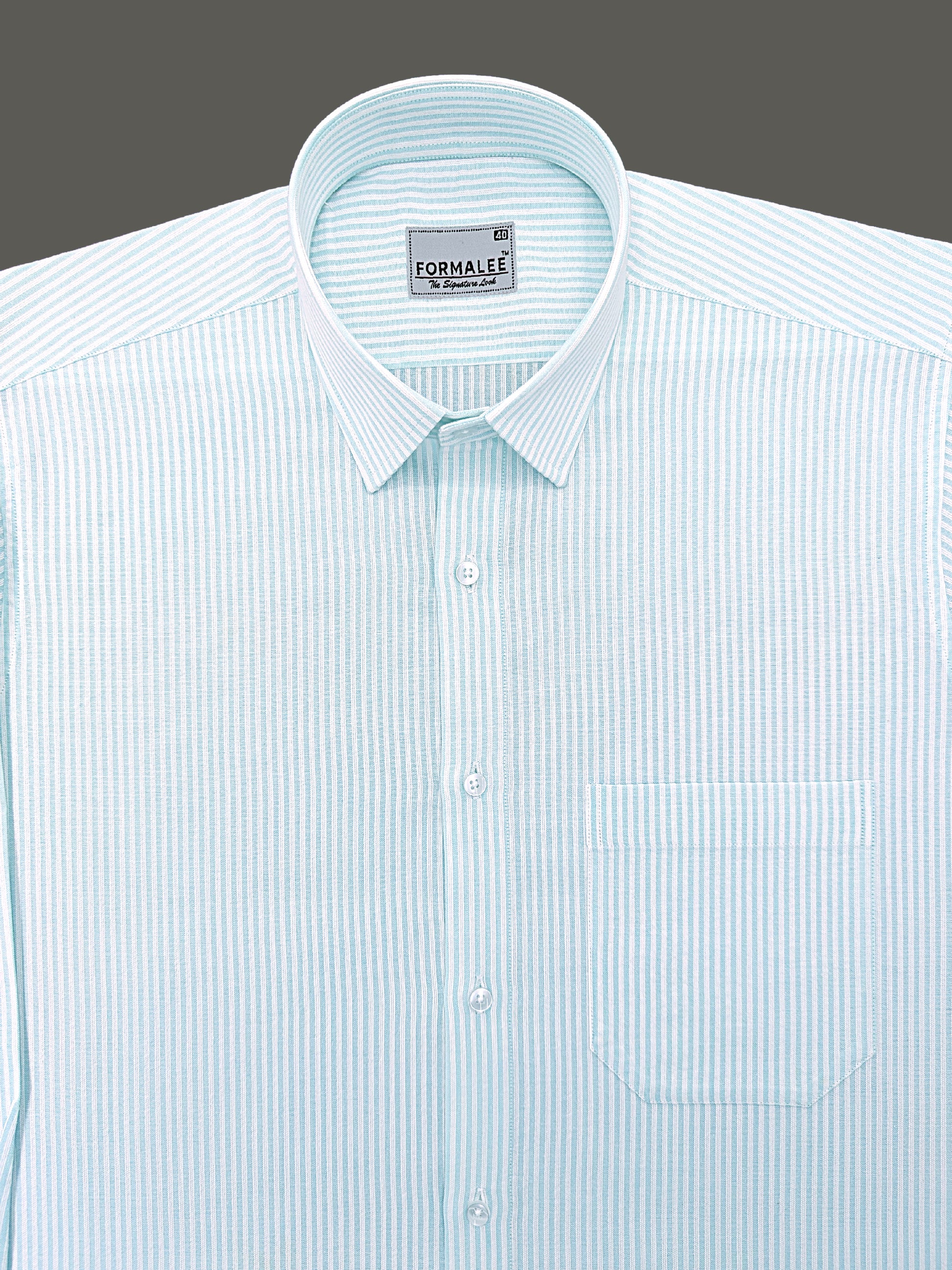 Verona Premium Linen Cotton White Stripe On Cyan Formal Shirt